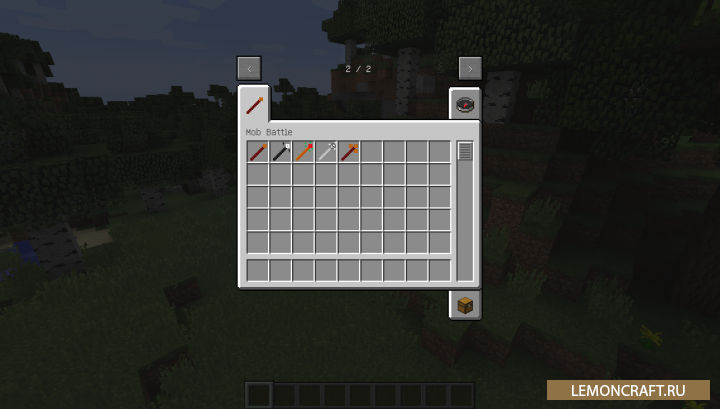 С помощью мода Mob Battle вы сможете устраивать настоящие битвы между мобами. При этом стравливать можно не только отдельных особей, но и бросить толпу на толпу. Для выполнения данных функций вы получаете специальные палочки. Одна предназначена для стравливания мобов между собой. Вторая нужна для того, что бы привести их в порядок после битвы.